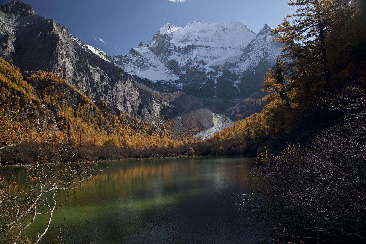 Le lendemain, Piotr part à pied avec sa mule et son guide, nous remontons en voiturette dans la deuxième partie de la réserve, plus haut et de l'autre côté de la principale montagne. Liu et Wang restent là toute la journée car Liu ne se sent pas de marcher plus avant. Je pars seul à la découverte de deux autres lacs. Je fais vite car je sais qu'ils m'attendent. Je mets 4h à faire l'aller-retour (au lieu de 6 pour les Chinois). La randonnée n'est pas technique mais en altitude, c'est une drôle d'impression que d'avoir le souffle court sans même courrir. Les lacs sont beaux aussi mais l'harmonie du tabeau n'est pas celle d'hier. Ce sont des cuvettes remplie d'une eau limpide encerclées de parois. On est loin du paysage de carte postale. Au loin aussi, les pics, blancs et majestueux, sont magnifiques.