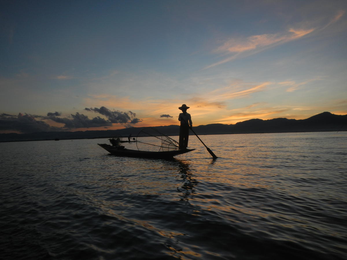 Arrivés au lac, nous payons le gouvernement (10$) avant d'embarquer sur une longue pirogue. On visite quelques magasins, d'habits, de bijoux, de cigares, avant de traverser les eaux. On est ahuri par l'ingéniosité, et pourtant la simplicité, des jardins flottants. Comme il y a peu de fond, les habitants du lac, vivant dans des maisons sur pilotis, ont planté des bambous qui retiennent horizontalement les mottes de terres importées. Cette terre est agglomérée par les racines des plantes qu'ils font pousser. "Venez vous baigner entre les rangées de plants de carottes et de radis!" pourrait être un futur slogan touristique. Avantage, pas besoin d'arroser, inconvénient, si c'en est un, tout se fait à pirogue. Nous finissons de traverser le lac, accompagnés par les mouettes et sur fond de coucher de soleil. Magnifique!