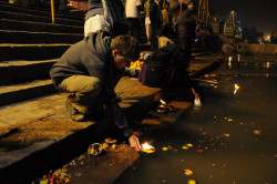 De petites embarcations en papier, fleuries, supportent des chauffe-plats et sont lâchées sur les eaux aux sons des cloches qui tintinnabulent sans cesse. Une occasion parfaite de râler après un religieux qui vous demande des roupies pour vous avoir béni et plâtré le front. (non mais! on avait rien demandé !) Bref un joli moment, encore et toujours extrêmement vivant.