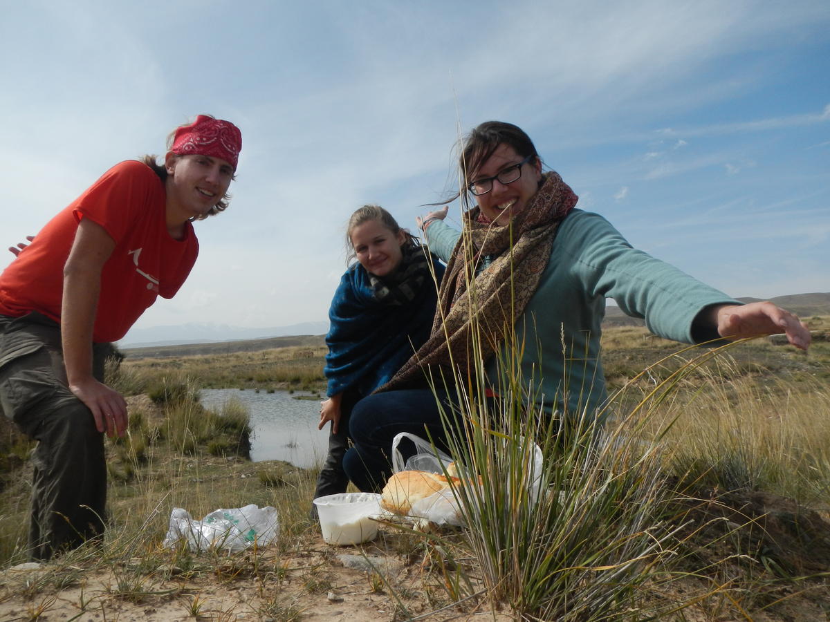 Deux Américaines, volontaires pour enseigner l'anglais, séjournent aussi dans cette auberge. Autour d'un bon thé tibétain, au beurre de yak et légèrement salé, qui nous réchauffe du frais de l'altitude, nous décidons d'aller voir un lac aux alentours. Elles ont bien envie d'essayer l'autostop avec moi. Bien sûr, avec deux jolies filles, le stop ne pouvait pas moins bien marcher, même si à 3, c'est normalement plus diffcile que seul. Notre conducteur ne connaît pas ce lac, et nous ratons un panneau l'indiquant, il nous faut donc faire demi tour. Une fois le chemin trouvé, il faut monter une petite colline pendant '1h30 avant de trouver un lac de montagne. Ildoit être magnifique par jour de grand beau. Mais aujourd'hui, il est plus prétexte à la ballade qu'autre chose :-) C'est intéressant de pouvoir discuter avec des étrangères, qui vivent en Chine depuis un an, et de partager avis et expériences sur ce pays.