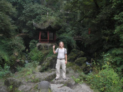 Je dois rescendre. 8h pour monter (annoncé 10). Il m'en faut 8 pour redescendre aussi (annoncé 10 aussi) par l'autre chemin. Il est plus long, parait il, plus beau aussi. Presqu'en bas, je rencontre Kevin, un Américain qui travaille à Shanghai depuis 8 ans. Il adore randonner et profite de tous ses déplacements de travail pour découvrir le pays.