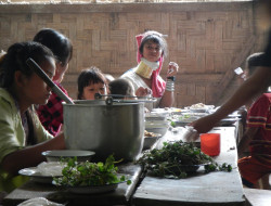 En revanche, à Khaem Son, on retrouve l'hospitalité à laquelle nous nous étions habitués et que nous apprécions tant. Le matin, jour du Bouddha, nous sommes conviés au festin, et alors que nous nous régalions, nous sommes invités par Loui (ou Toui...) à venir passer quelques jour chez elle. Loui deviendra rapidement Mé (maman en thaï) et son mari, Po (papa). Nous sommes choyés, nous allons visiter alentours avec leur fille, nous partageons les repas, que nous apprenons d'ailleurs à cuisiner (Mmmmh le bon curry coco au poulet). Au fait, Po ne vous fait il pas penser à Carl, le grand père dans l'animation "La Haut"?