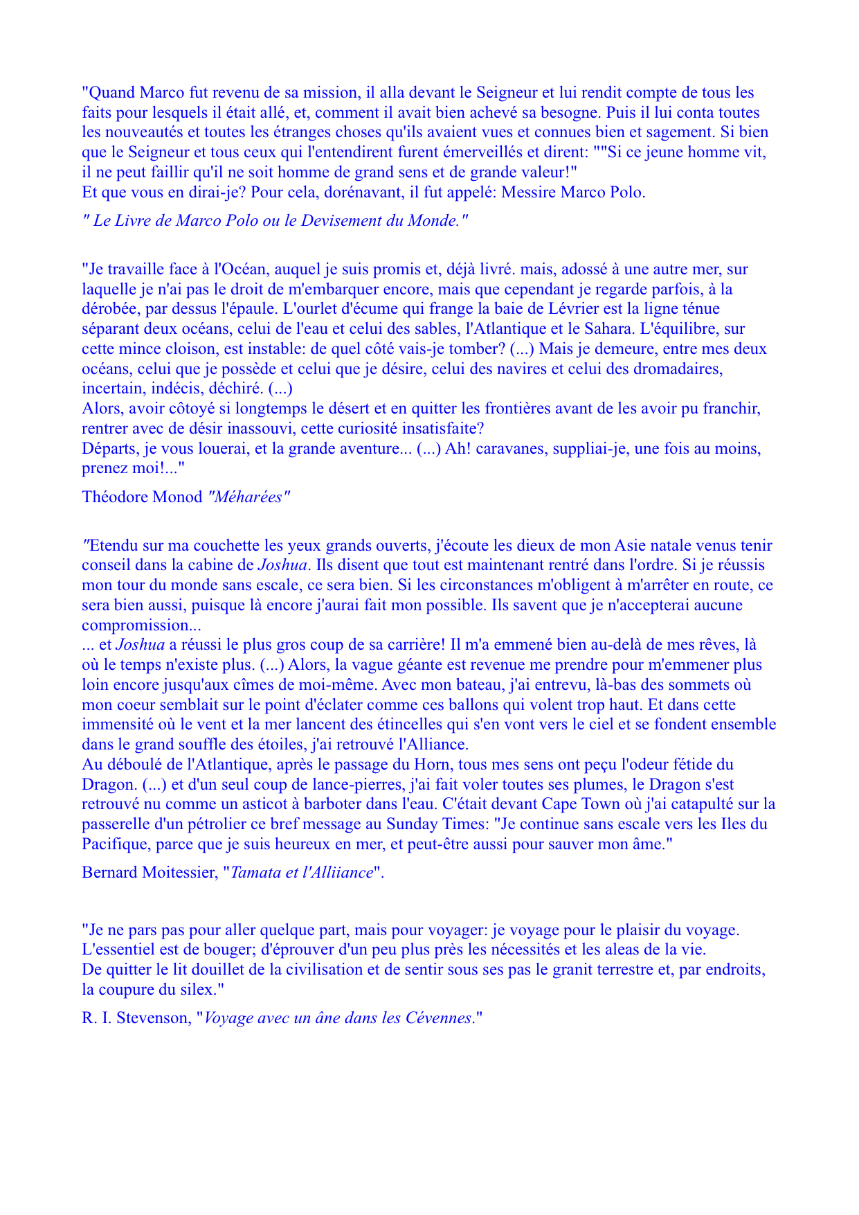 Voici pour toi qui les aimes, quelques citations à propos du voyage :
